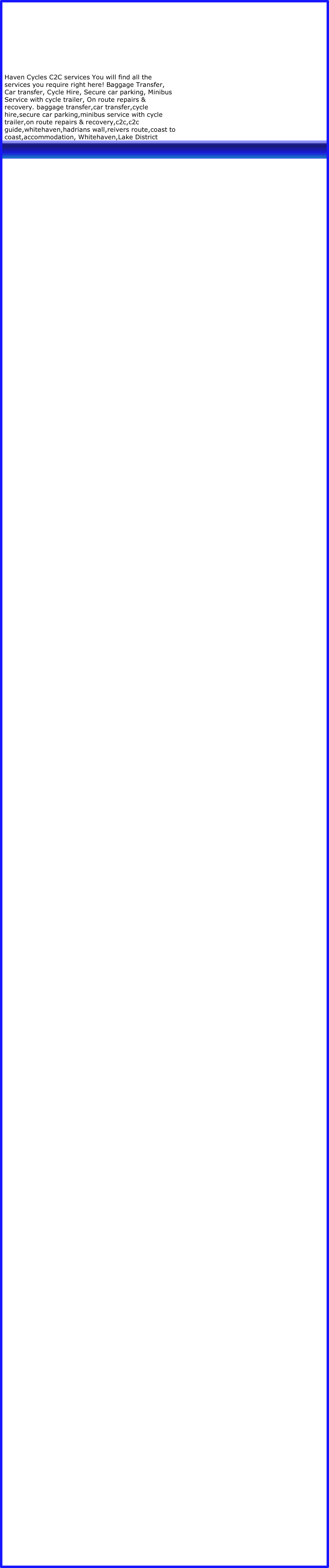 Whatever your problem we can organise your recovery, taking you on to the finish, returning you to the start or relocating you to any point on the c2c. When hiring bikes you will be required to carry out general maintenance & repairs, recovery costs dependant on your location.